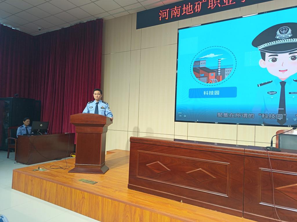 学校邀请到郑东新区大有路派出所李磊指导员为大家做反诈宣讲,李警官以分析网络求职、刷单、冒充客服、网络交友(杀猪盘)、买卖游戏装备、冒充熟人等学生群体常见诈骗的手段和特点为切入点,通过风趣的言语为师生代表们进行了一场精彩的宣讲。