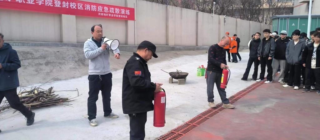 本次消防安全活动由学校保卫部主办,登封校区工作人员以及地矿工程学院的学生参加了演练。